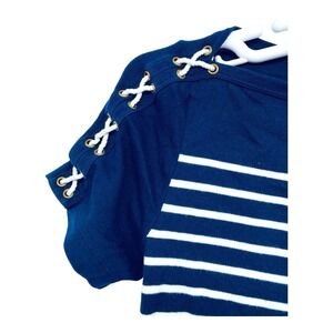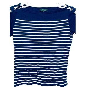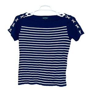 Ralph Lauren Blue Stripes T Shirt Size Large Lace Up Tie Shoulders L