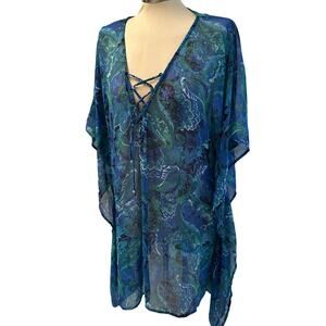 Ralph Lauren Blue Swim Beach Cover Up Chiffon Tunic Paisley XL 1X