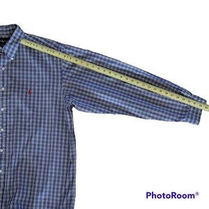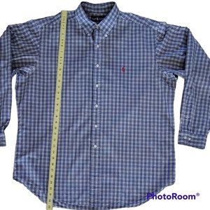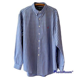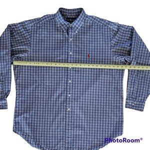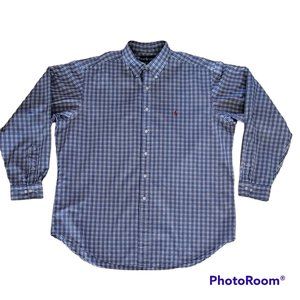 Ralph Lauren Blue White Checked Button Down Shirt with Red Pony Logo