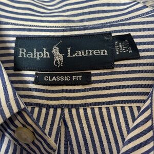 Ralph Lauren Blue White Pin Stripe Classic Fit Button Down Shirt Size 17 1/2