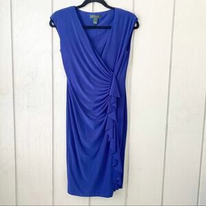 Ralph Lauren Blue Wrap V Neck Modest Dress