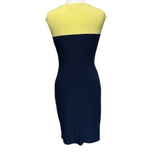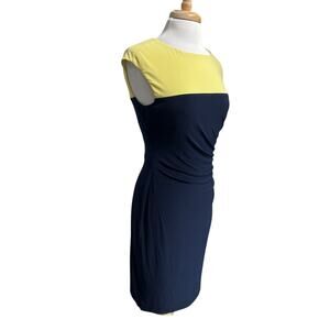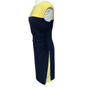 Ralph Lauren Blue Yellow Colorblock Ruched Fitted Dress Sleeveless Career sz 8