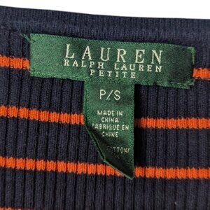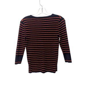 Ralph Lauren Blue and Orange Striped Ribbed V Neck 3/4 Sleeve Buttons SZ-M