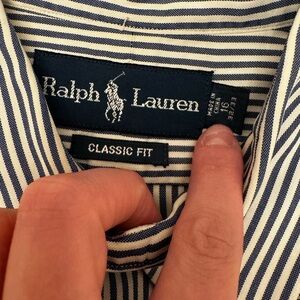 A Ralph Lauren essential: classic fit button-down in crisp blue & white stripes. Versatile for work, casual Fridays, or weekend polish. 📏 Size: Neck 16 / Sleeve 32-33 👔 Classic fit, embroidered polo logo 👌 Excellent condition Ralph Lauren shirt, striped button down, men’s dress shirt, preppy workwear, classic fit shirt, business casual #RalphLauren #ClassicStyle #Menswear #PreppyLook #StripedShirt #BusinessCasual SKU 0392