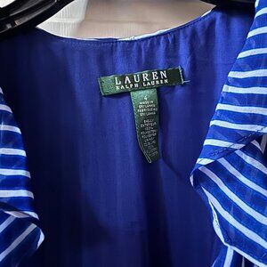 Ralph Lauren Blue and White Striped Sleeveless Wrap Dress - Size 4