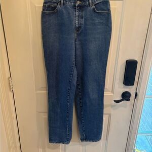 These Ralph Lauren boyfriend jeans feature a relaxed fit with a medium blue wash, offering a comfortable and versatile style. The slightly worn-in look adds a touch of casual elegance, making them perfect for everyday wear.