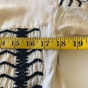 Stunning loose weave top in a classic cream and black. Definitely a peasant style. Could be vintage, but, perfect for right now. As you can imagine, the fabric snags easily, and I cleaned up a few, but, there are no holes or large snags. In very nice condition.