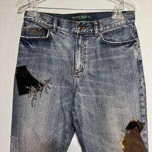 Ralph Lauren Boho Patch Bootcut Jeans Size 6 Petite Embellished Denim Vintage