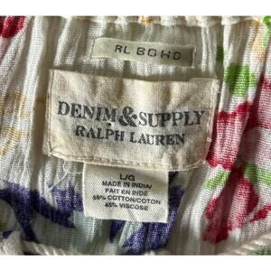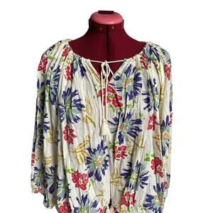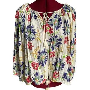 Ralph Lauren Boho Size Large Cotton Blend Safari Floral Print Gaze Tassel Blouse