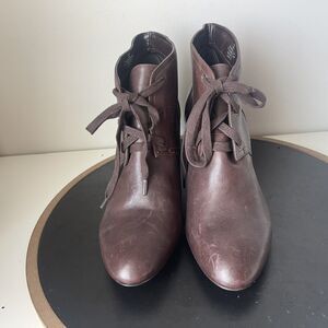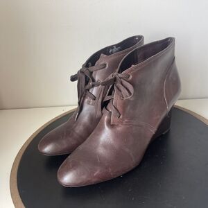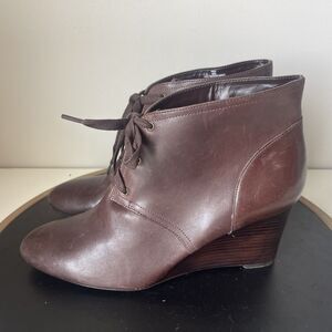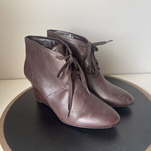 Ralph Lauren Booties Wedge Heel Women's Size 10 B Brown Tamia Leather Lace Up