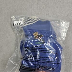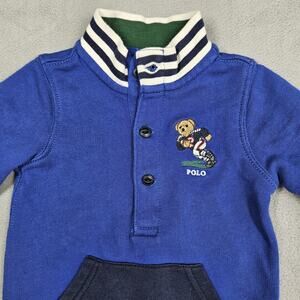 Ralph Lauren Boys 3 Months Blue Football Bear Rugby Polo One Piece Romper Snaps