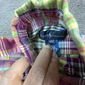 Ralph Lauren Boys 3T Shirt Short Sleeve Button Up Spring Easter Plaid Pink