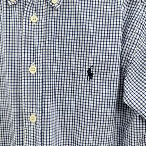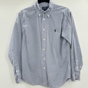 Ralph Lauren Boys' Button Down Shirt Sz M 12/14 Blue White Check Plaid Long Slv