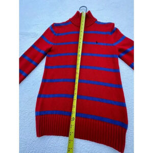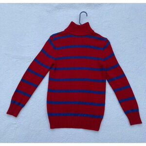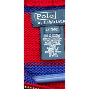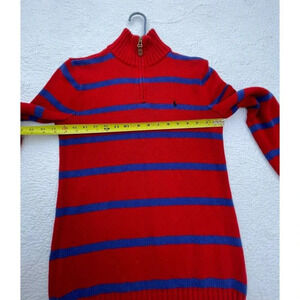 Ralph Lauren Boys Long Sleeve 1/4 Zip Mock Neck Sweater Red Stripes Sz L (14-16)