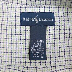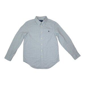 Ralph Lauren Boys Long Sleeve Button-Down Shirt L (14-16) 100% Cotton Blue Check