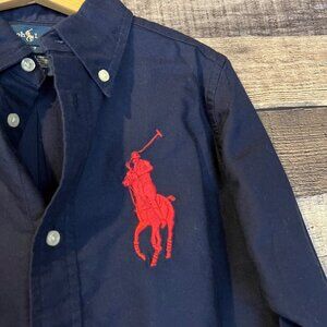 Ralph Lauren Boys Navy & Red Button Down Oxford Shirt 7 Big Pony Logo Preppy