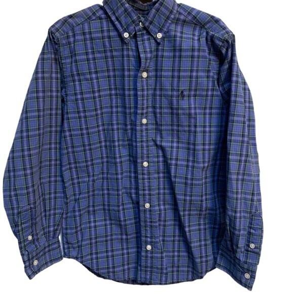 Ralph Lauren Boys Plaid Blue Embroidered Pony Long Sleeve Shirt Size 7 Button Up