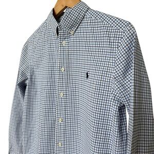 Elevate your casual wardrobe with this Ralph Lauren long sleeve button-up shirt, designed for teens who appreciate classic style. The blue plaid pattern, crafted from 100% cotton, offers a timeless look with natural stretch for all-day comfort. The collared neckline and iconic logo add a touch of sophistication, making it perfect for casual outings, school events, or weekend gatherings. Machine washable for easy care, this shirt is a versatile addition to any closet. Pre-owned but in excellent condition, ready to enhance your style. Pit to pit: 20” Length: 25” Keywords: Ralph Lauren, long sleeve, button-up, plaid, blue, teens, classic fit, collared, casual, cotton, machine washable, iconic logo, natural stretch, pre-owned, versatile. Brand: Ralph Lauren Size: Large 14-16 Sleeve length: Long Sleeve Department: Teens Color: Blue Pattern: Plaid Material: 100% Cotton Fit: Classic Features: Natural stretch, Iconic logo Type: Button-Up Neckline: Collared Occasion: Casual Garment care: Machine Washable