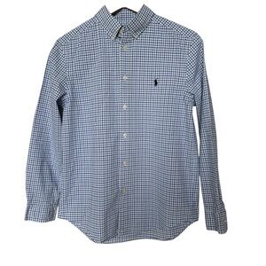 Ralph Lauren Boy’s Plaid Blue Long Sleeve Button-Up Shirt Size Large Cotton