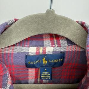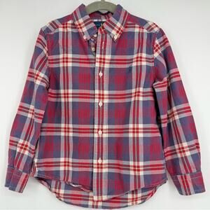 Ralph Lauren Boy's Red Blue Plaid Button Down Long Sleeve Shirt Top Size 5