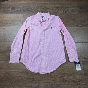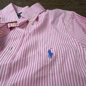 Ralph Lauren Boys Tailored Button Down Shirt, Pink/White Pinstripe Sz 10 NWT