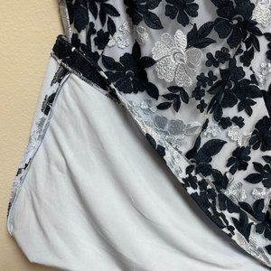 Light Blue Lining with Navy/Silver Floral Brocade Flowers