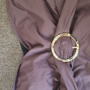 Elegant brown bathing suit top. Features a stylish gold accent. Perfect for any occasion.