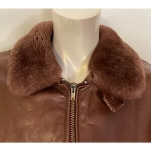 Ralph Lauren Brown Bomber Aviator Jacket Womens 12 Vintage Shearling Collar