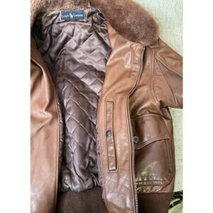 Vintage Ralph Lauren Brown Leather Bomber / Aviation Jacket