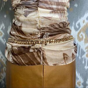 Ralph Lauren Brown Havana Print Silk Ruffle Blouse