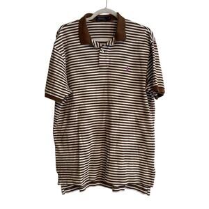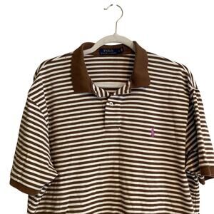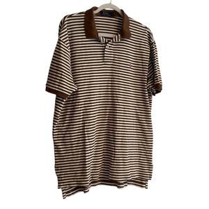 Ralph Lauren Brown White Stripe Soft Cotton Golf Preppy Polo Shirt Size Large