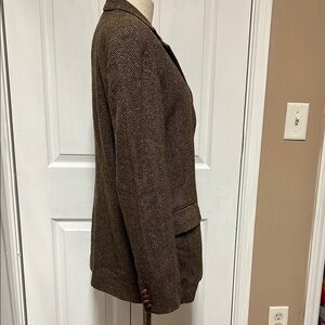 This Ralph Lauren blazer in a rich brown hue features a classic notched lapel and a subtle tweed-like texture. Crafted from a wool blend, it offers a traditional fit that exudes timeless elegance.