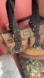 Stylish tote bag with dual front pockets. Features sturdy black straps and metal accents. Perfect for everyday use.