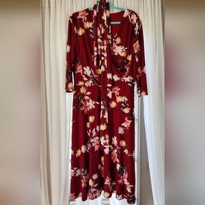 Ralph Lauren Burgundy Floral Long Sleeve Dress