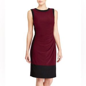 Ralph Lauren Burgundy Maroon Sleeveless Ruched Knee Length Fitted Dress Size 6