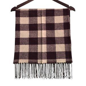 Ralph Lauren Burgundy Plaid Wool Fringe Scarf