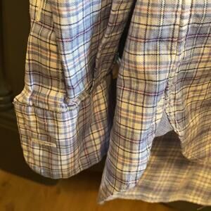 Long sleeve button down. Light blue, pink and white. Size medium. 100% lightweight cotton. Non smoking home.