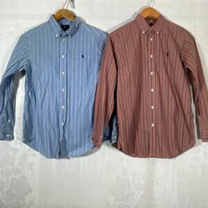 Ralph Lauren Button Down Boys Large 14 16 Blue Orange Striped Lot of 2