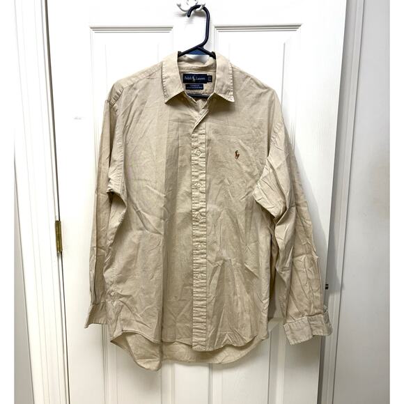 Ralph Lauren Button Down Dress Shirt, Tan Yarmouth Cotton, Men's Size 16 34