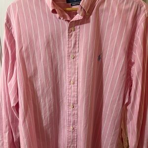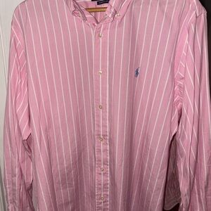 Ralph Lauren Button Down Preppy Pink and White Striped Shirt 16 1/2 like new!