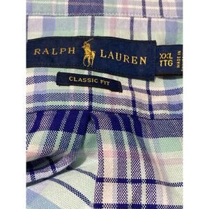 Ralph Lauren Button Down Shirt 2XL Classic Fit Blue Plaid Pony Logo Long Sleeve