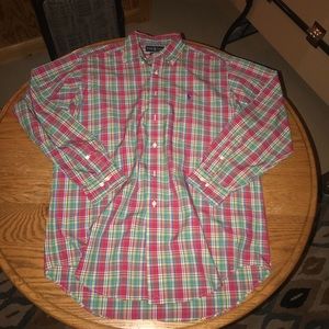 Mint condition Men’s medium classic fit Red and Green Ralph Lauren button down❗️blue horse emblem