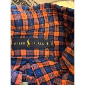 Ralph Lauren Button Down Shirt Blue & Orange Plaid Mens S Classic Fit All Cotton