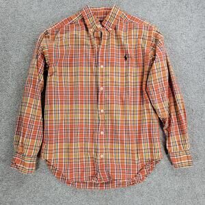 Ralph Lauren Button Down Shirt Boys L 16-18 Orange Plaid Cotton Classic Fit