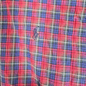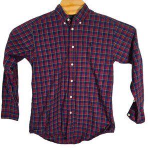 Ralph Lauren Button Down Shirt Boys Large (14-16) Red Blue Plaid Long Sleeve