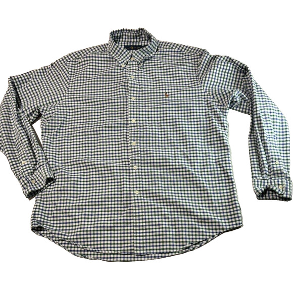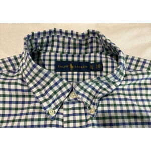 Ralph Lauren Button Down Shirt Green Blue Flesh Pony Men's Size L