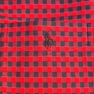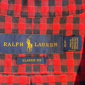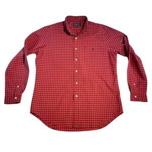 Ralph Lauren Button Down Shirt Men Large Classic Fit Red Black Check Pocket Pony