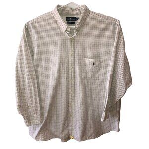 Ralph Lauren Button Down Shirt Mens 3XL Big Two-Ply Cotton Cream Checkered Plaid