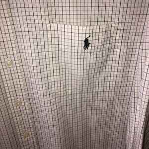 Ralph Lauren Button Down Shirt Big Two-Ply Cotton Blue Checkered Plaid