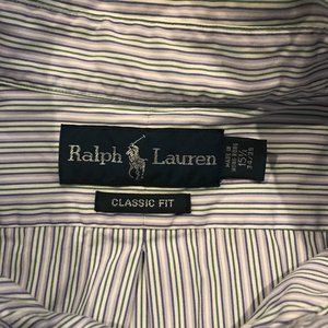 Ralph Lauren Mens Classic Fit Shirt Purple and Green Striped Long Sleeves Button Down Collar 15.5